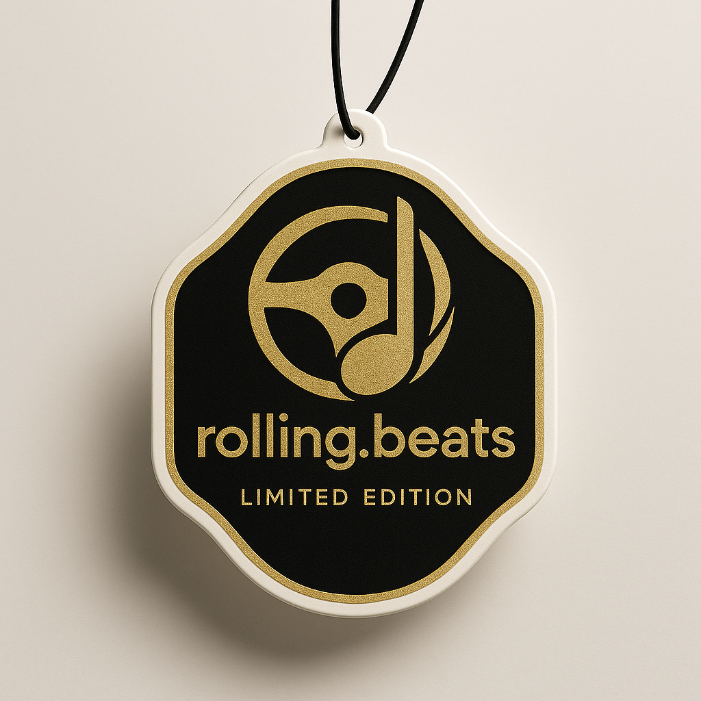Der rolling.beats Duftbaum – Limited Edition kombiniert cleanes Design mit einem intensiven, modernen Duft. Die spezielle Form, der goldene Rand und das markante Logo machen ihn nicht nur zu einem Lufterfrischer, sondern zu einem Statement-Piece im Innenraum.